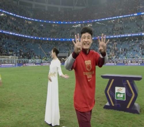 不过随后的颁奖仪式上,武磊平复了心情,领取中超冠军奖牌时,他还开心对着镜头比出了“4”的手势,代表海港4次夺得中超冠军。