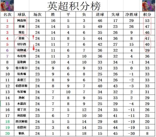积分榜方面,今天又是阿森纳开心的一天,本轮他们先赛大胜止住颓势,今天2大对手又齐齐丢分,维拉主场输球,曼城客场2球领先被追平,这样的话本轮过后阿森纳又获得了6分的领先优势,比曼城多6分,比维拉多7分。争4方面就比争冠激烈得多,曼联今天赢球后超过利物浦,切尔西重回前4,三队还是依次1分之差分列4到6位。