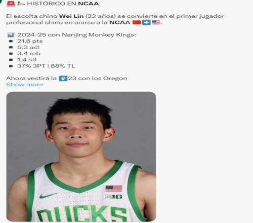 林葳是CBA本土得分王,他在今夏官宣急加盟NCAA俄勒冈大学,在赛季前俄勒冈大学一度被预测排全美25,随着这一波三连败后俄勒冈大学的排名已经跌至第70,林葳的个人表现也遭到质疑。
